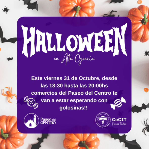 Este viernes 31 de octubre, Alta Gracia se prepara para celebrar Halloween con actividades para toda la familia. Desde las 18:30 hasta las 20:00 horas, los comercios del Paseo del Centro repartirán golosinas a todos los niños y niñas disfrazados que pasen con el clásico “dulce o truco”.