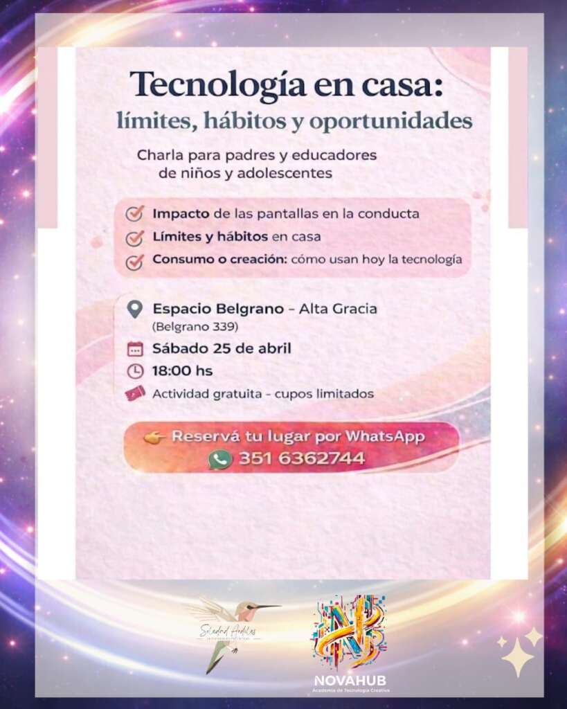 La Lic. en Psicología Soledad Ardiles y la educadora Viviana Ramadan brindarán una charla gratuita el próximo 25 de abril en Alta Gracia. En diálogo con Radio Alta Gracia, advirtieron sobre los peligros de la gratificación inmediata, el «chupete electrónico» y la importancia de recuperar el vínculo cara a cara.